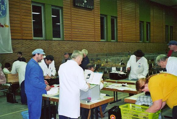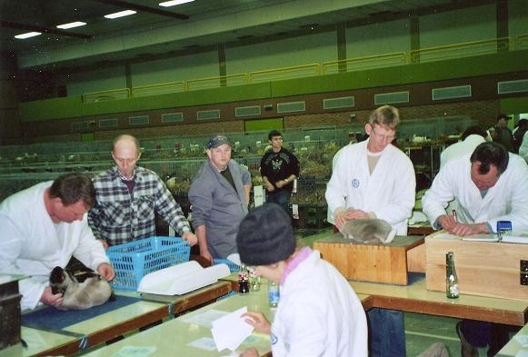 Die Kaninchen werden durch Preisrichter/innen bewertet |