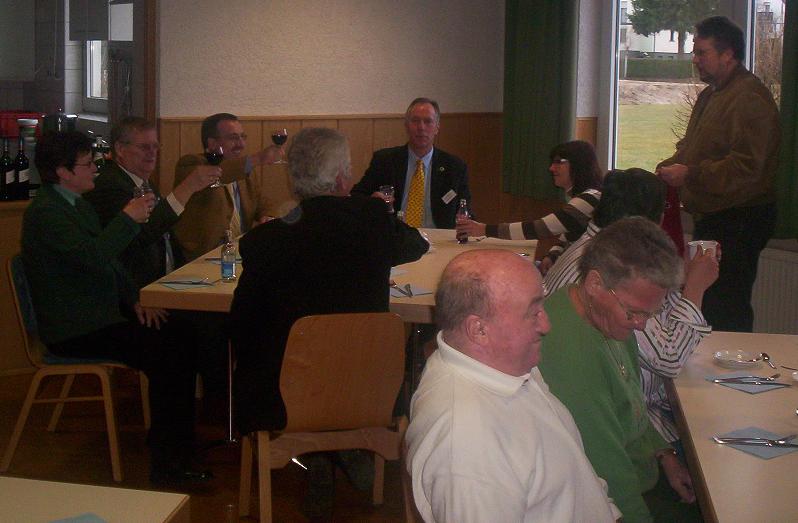 Christel Schui Hinten von links: Elfriede Grass, Ingo Droege, Bürgermeister von Dillendorf, Manfred Grass, 2. LV-Vorsitzender, Frau Gewehr, Klaus Gewehr, Bürgermeister von Sohren |